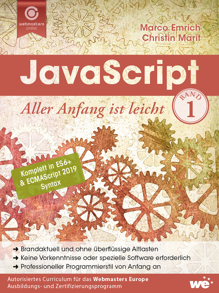 Das Lernbuch JavaScript: Aller Anfang ist leicht ist in digitaler Form Teil folgender Zertifizierungen des Webmasters Europe e.V. (WE):